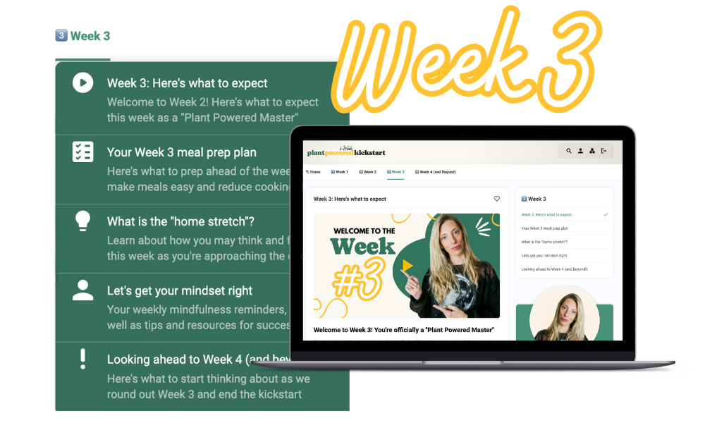 The 3 Week Plant Powered Kickstart program is made up of 3 core parts: